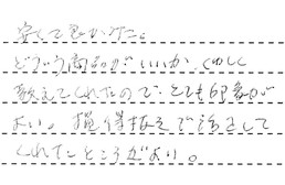 安くて良かった。どういう商品がいいか、くわしく教えてくれたので、とても印象がよい。損得抜きで話をしてくれたところがよい。
