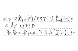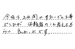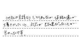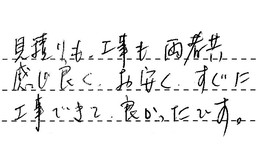 見積りも、工事も、両者共感じ良く、お安く、すぐに工事できて、良かったです。