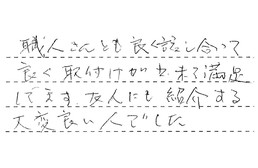 職人さんとも良く話し合って、良く取付けが出来て、満足してます。友人にも紹介する大変良い人でした。