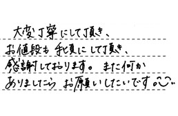 大変丁寧にして頂き、お値段も手頃にして頂き、感謝しております。また何かありましたら、お願いしたいです。