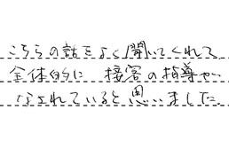 こちらの話をよく聞いてくれて、全体的に接客の指導がなされていると思いました。