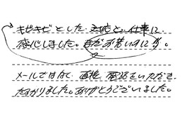 まだお若いのに、キビキビとした対応と仕事に感心しました。メールではなく、直接電話をいただき、たすかりました。ありがとうございました。