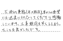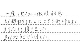 一度、他社に依頼する為、お断わりしたのに、とても気持ちよく対応して頂きました。ありがとうございました。