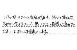 いろいろなリフォーム会社があり、ちらしを集めては、後手になってましたが、思い切って相談して良かったです。又よろしくお願いします。