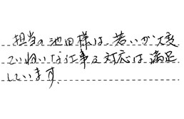 担当の池田様は、若いが大変ていねいな仕事と対応は、満足しています。