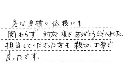 急な見積り依頼にも関わらず、対応頂き、ありがとうございました。担当してくださった方も、親切・丁寧で良かったです。