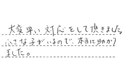 大変早い対応をして頂きました。小さな子がいるので、本当に助かりました。