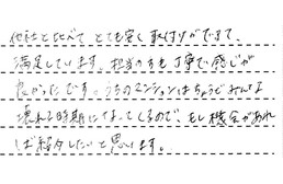 今迄、ガス工事は一社のみなんて考えてました。こんなに早く、思ったよりお値打ちに取り替え工事ができ、嬉しいです(快適に使ってます)。ありがとうございました。