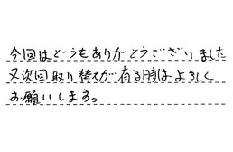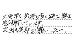 大変早く気持ち良く施工頂き、感謝しています。次回も是非お願いしたい。
