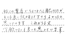初めての業者で、ちょっと心配でしたが、とても良く説明して下さり、よかったと思っています。これからも又、お願いしても良いと思っています。
