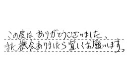 この度は、ありがとうございました。また機会がありましたら、宜しくお願いします。