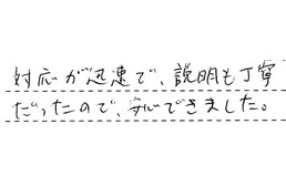 対応が迅速で、説明も丁寧だったので、安心できました。