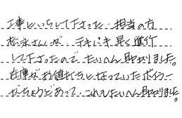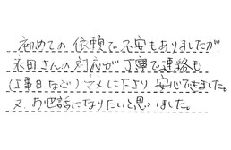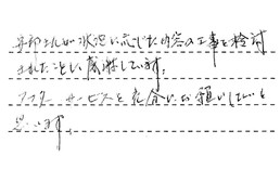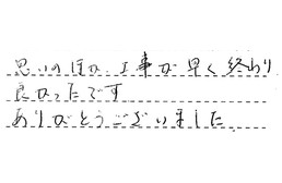 思いのほか、工事が早く終わり、良かったです。ありがとうございました。