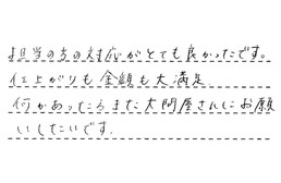 とても段取り良く、予定通りに作業していただきました。ありがとうございます。今後何かありましたら、よろしくお願いします。