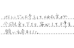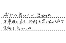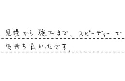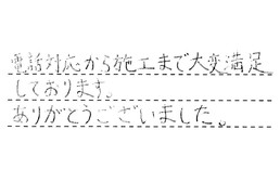 電話対応から施工まで、大変満足しております。ありがとうございました。