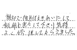 親切で、後片付もきれいにして、説明も色々して下さり、気持よく修理してもらえました。