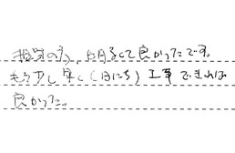 担当の方、明るくて良かったです。もう少し早く(日にち)工事できれば良かった。