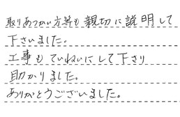 取りあつかい方等も親切に説明して下さいました。工事もていねいにして下さり、助かりました。ありがとうございました。