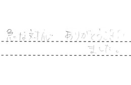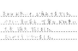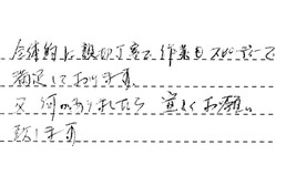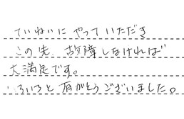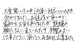 先日はお寒い中、お疲れさまでした。やさしい受け答え、丁寧なお仕事に、大変満足致しました。ありがとうございました。