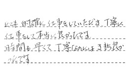 とても的確に仕事をしていただき、丁寧に仕事をして、本当に良かったです。時間も早くて、丁寧なのには、きもち良かったです。