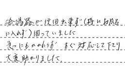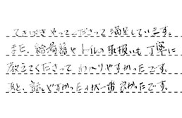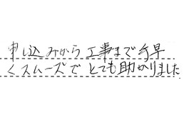 てきぱきやってくださって、満足しています。また、給湯器やトイレの取扱いも丁寧に教えてくださって、わかりやすかったです。あと、話しやすかったのが、一番良かったです。