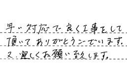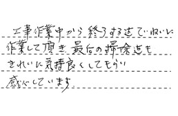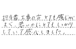 担当者、工事の方、とても感じがよく、若いのに、とてもしっかりしていて、感心しました。