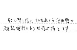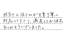 担当の土佐さんが、大変丁寧に対応して下さり、満足しております。ありがとうございました。