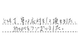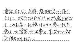 電話ではなく、直接春日井店へ伺いました。対応された方がとても感じがよくて、このお店にお願いしようと思いました。受付→営業→工事と、すばやい対応で助かりました。