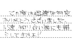 この度は迅速な対応ありがとうございました。早速、知り合い等にも紹介してますよ!!