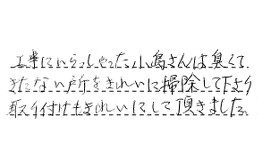 工事にいらっしゃった小島さんは、臭くてきたない所をきれいに掃除して下さり、取り付けもきれいにして頂きました。