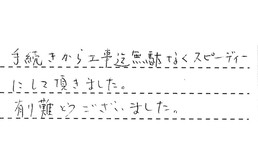 手続きから工事迄、無駄なくスピーディーにして頂きました。有り難うございました。