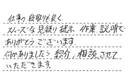 仕事の段取りも良く、スムーズな見積り提示、作業、説明で、ありがとうございます。何かありましたら、紹介、相談させていただきます。