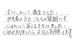 私共の都合に快く対応していただき、ありがとうございました。全て満足してます。