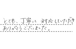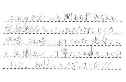 土日の対応にも関わらず、きちんと電話連絡をしていただけたところ、実際、現場にきてくれた光安さんも礼儀正しく、丁寧な仕事をしてくれました。ありがとうございました!!
