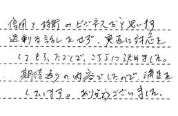信用と技術のビジネスだと思います。過剰な話をせず、実直に対応をしてもらったことで、こちらに決めました。期待通りの内容でしたので、満足をしています。ありがとうございました。