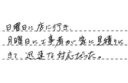 日曜日に店に行き、月曜日に工事者が家に見積りにきて、迅速な対応だった。