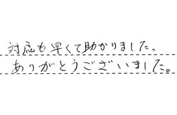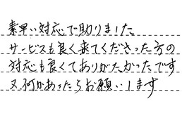 素早い対応で助かりました。サービスも良く、来てくださった方の対応も良くて、ありがたかったです。又、何かあったら、お願いします。