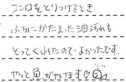コンロをとりつけるとき、ふちにかたまった油汚れもとってくれたので、よかったです。やっと魚がやけます。