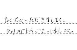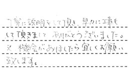 丁寧に説明をして頂き、早々に工事もして頂きまして、ありがとうございました。又、機会がありましたら、宜しくお願い致します。