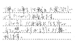 丁寧に仕事をして頂き、大変うれしいです。ありがとう御座居ます。これからもお世話になる事が有ると想いますが、よろしくお願い致します。