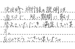 発注時、施工後の説明は適切で、短い期間に取り替えていただき、満足しています。ありがとうございました。