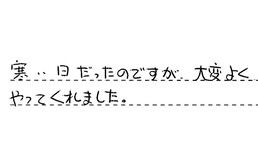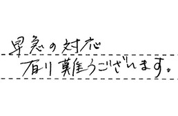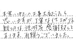 お寒い中での工事、大変だったと思いますが、丁寧な仕上がりと親切な説明等、感謝致しております。有難うございました。