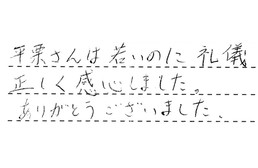 平栗さんは、若いのに礼儀正しく、感心しました。ありがとうございました。