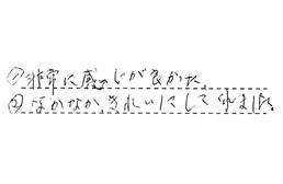 1. 非常に感じが良かった。 2. なかなかきれいにしてくれました。