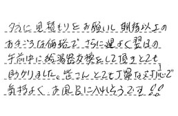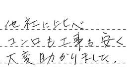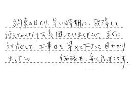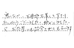 寒いなか、一生懸命工事して下さり、ありがとうございました。助かりました。又、お友達にも紹介させてもらいます。
