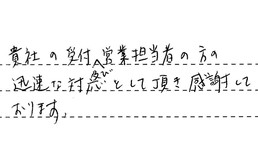 貴社の受付及び営業担当者の方の迅速な対応をして頂き、感謝しております。