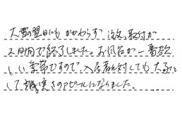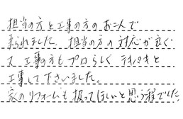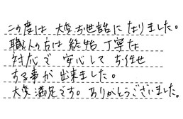 この度は大変お世話になりました。職人の方は、終始丁寧な対応で、安心してお任せすることが出来ました。大変満足です。ありがとうございました。