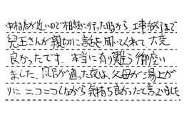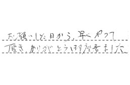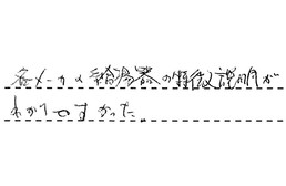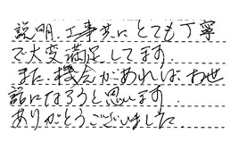 説明、工事共に、とても丁寧で、大変満足してます。また機会があれば、お世話になろうと思います。ありがとうございました。