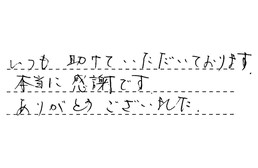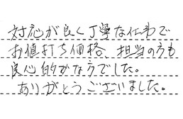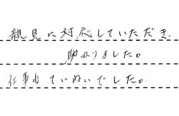 対応がよく、丁寧な仕事で、お値打ち価格、担当の方も良心的な方でした。ありがとうございました。