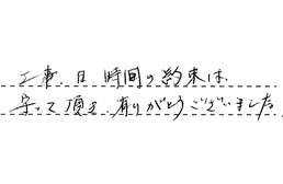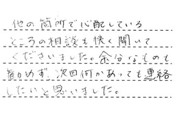 他の箇所で心配しているところの相談も、快く聞いてくださいました。余分なものも勧めず、次回何かあっても、連絡したいと思いました。